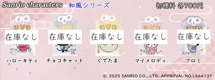 なお、在庫のあるサンリオキャラクター御守に関しましては、同じ種類は一体までと制限させていただいております。